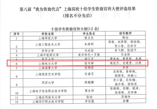近日,由上海市教育委员会指导,上海市学生事务中心主办的第八届“我为资助代言”上海高校十佳学生资助宣传大使评选活动在上海中医药大学落下帷幕。我校经济与管理学院张宇婷同学凭借精彩的演讲、丰富的资助宣传经历,获得评委一致认可,获评上海高校十佳学生资助宣传大使称号。