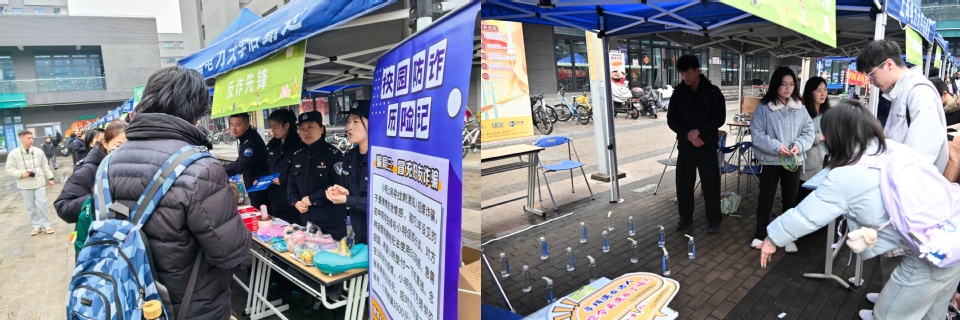 市集设置生活便民、健康生活、安全守护三大主题区域,推出近二十项贴近师生需求的实用服务。生活便民区,“巧手焕新”维修站提供自行车维修、衣物缝补、挂烫、眼镜清洗等细致服务;“形象管家”服务点理发师为师生免费理发,美容师传授护肤心得;“数码帮手”服务台前,手机贴膜、屏幕清洁、软件安装指导等热门项目前排起长队。健康生活区,“杏林暖意”健康角提供血压血糖检测、急救知识教学及肩颈放松按摩,传递温情关怀;“美好生活”加油站通过废旧物品回收、垃圾分类竞猜、快闪答题等形式,倡导绿色生活方式,深受学生喜爱。安全守护区,“反诈先锋”摊位结合典型案例剖析、趣味问答互动,向师生普及刷单返利、冒充客服、校园贷等高发诈骗防范要点,筑牢校园安全防线。活动当天还推出学生公寓洗衣机免费使用等重磅暖心福利,师生纷纷表示后勤服务越来越有温度。