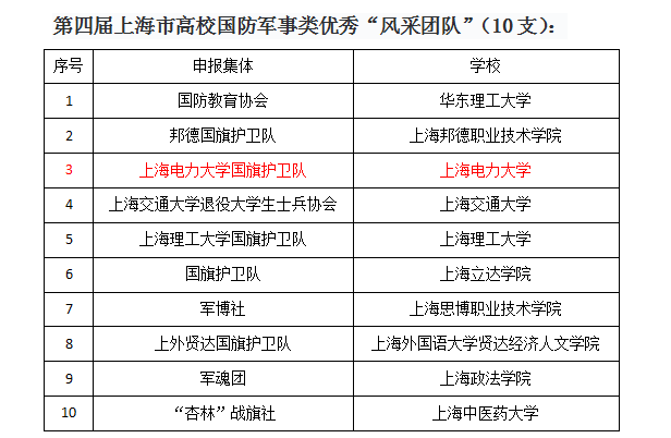 6月28日,由上海市教育委员会、上海市征兵办、上海市退役军人事务局联合主办,上海教育报刊总社承办的“闪耀的星 最美的你”上海市第四届退役大学生士兵“风采之星”终评活动举行。上海市教育委员会学生处、上海市教育委员会高等教育处、上海市退役军人事务局思想政治和权益维护处、上海教育报刊总社等单位领导担任此次终评活动的评委。学校国旗护卫队荣获上海高校国防军事类优秀“风采团队”,计算机与科学技术学院学生曹永富荣获“风采之星”提名奖。